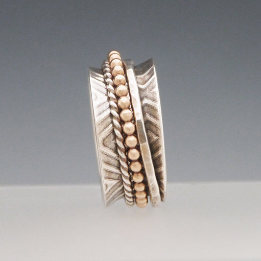 Tripple Spinner Ring Sterling Silver 14k Rose and Yellow Gold Fill
