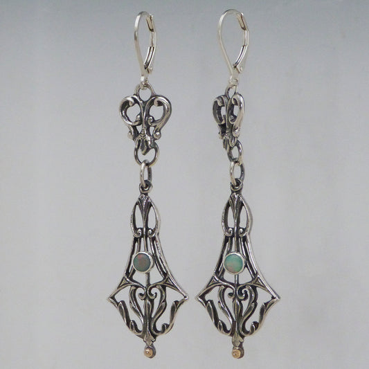 Victorian Hand Pierced Earrings with Ethiopian Opal