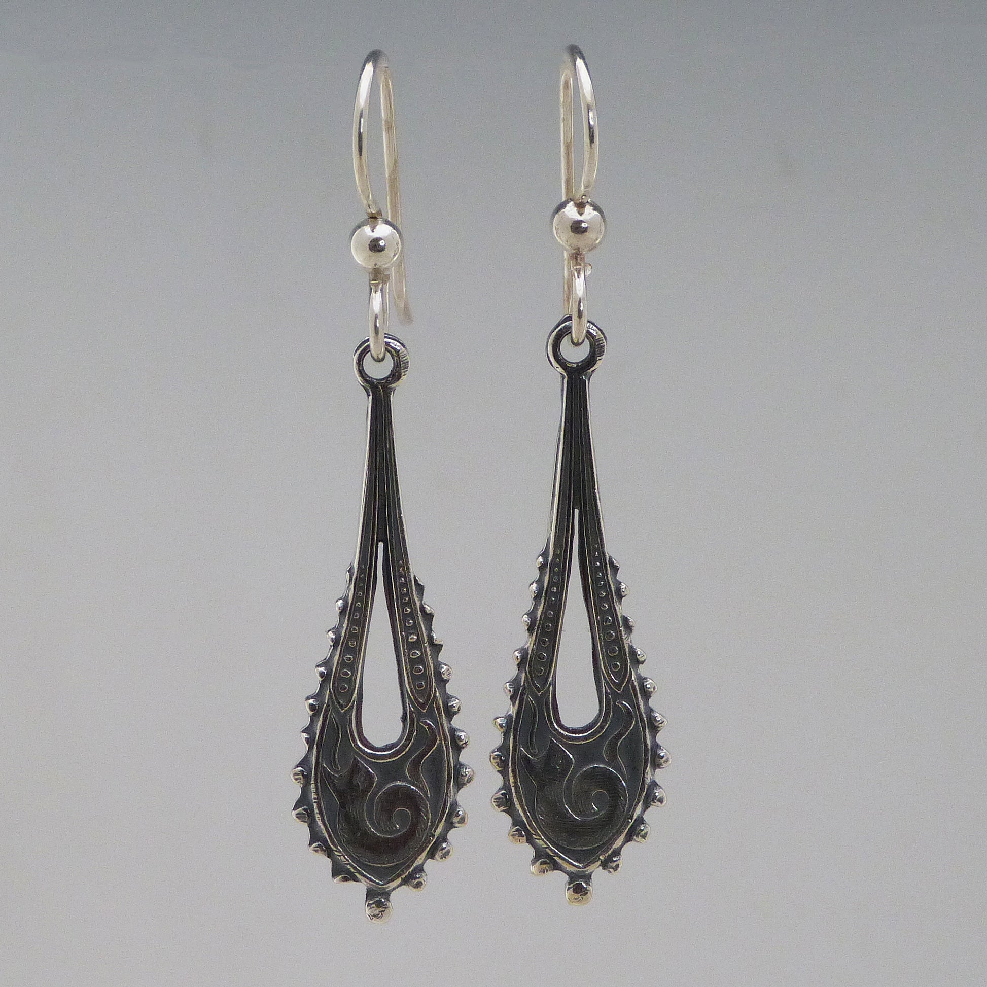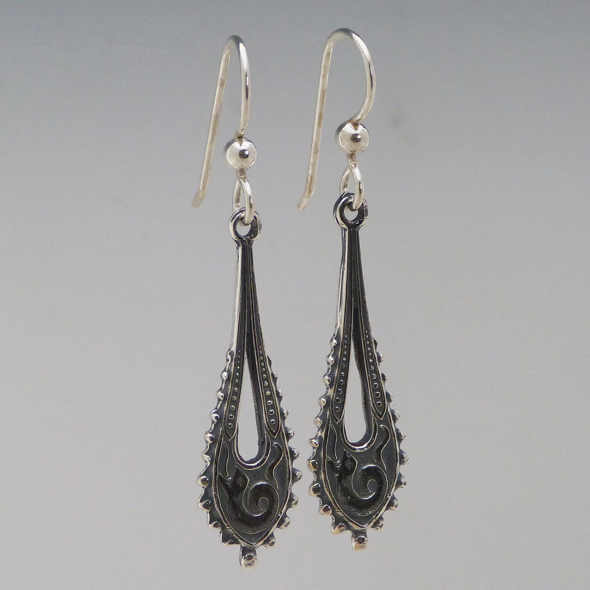 Put the bite on style with these prehistoric Ancient Serpent Earrings! Crafted from fine silver and Argentium sterling silver, with sterling silver ear wires, they prove that style is timeless! Earrings are 1 & 1/3" long.
