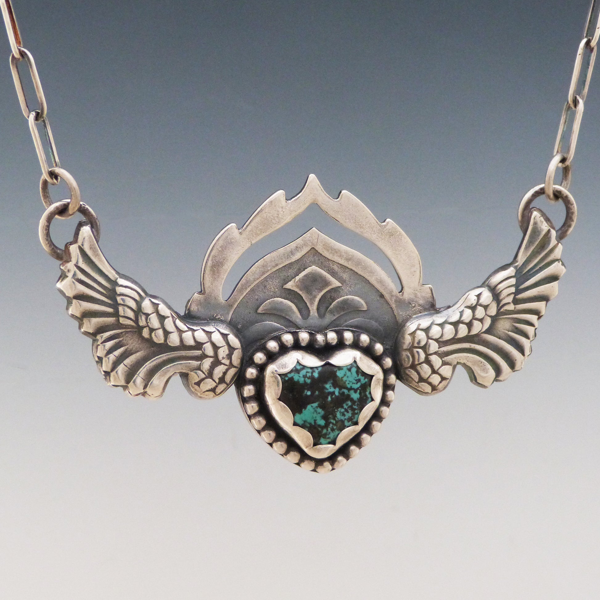This drool-worthy statement piece is crafted using the finest .999 silver and sterling silver. Make a gorgeous statement with this "Be Brave, Be Kind" Necklace featuring a heart-shaped bezel of Turquoise. Show 'em what's up with the beautiful engraving on the back that reads, "Be Brave, Be Kind". Plus, a tarnish-resistant sterling silver chain, approx. 18" lengthy. Pendant is approx. 2 1/4" long.