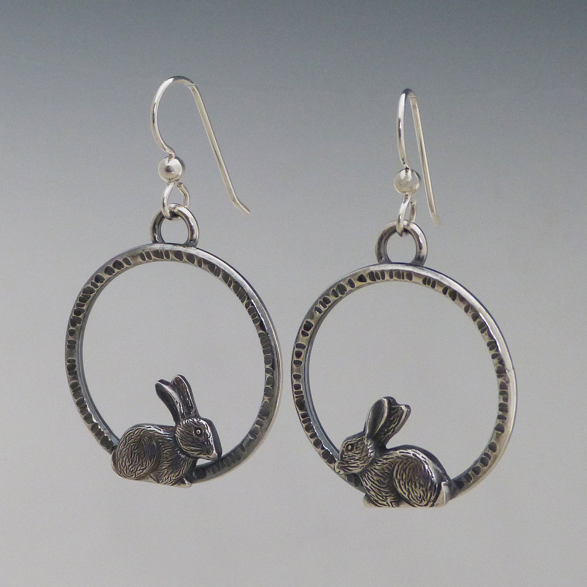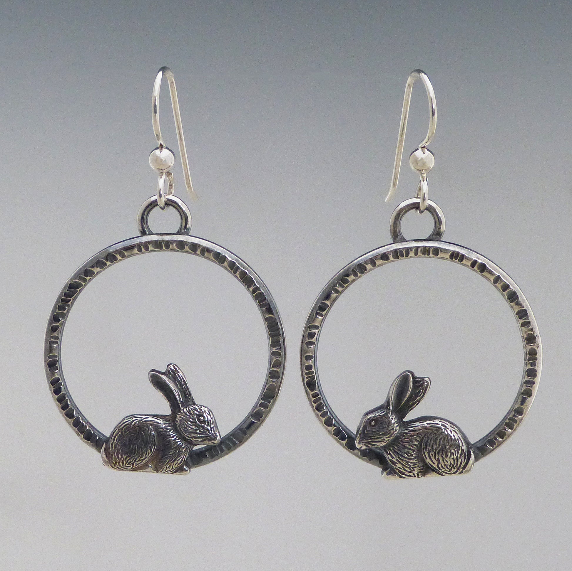 These Matching Bunny Earrings are the hoppiest way to add a bit of cute to any outfit! Their hand hammered textured hoops adds an extra element of fun and each one is made with a combination of .999 fine silver and Argentium silver. Plus, they come with sterling silver ear wires so you can hit the scene in style. Hop to it and grab a pair! Hoops are approx. 1" wide.
