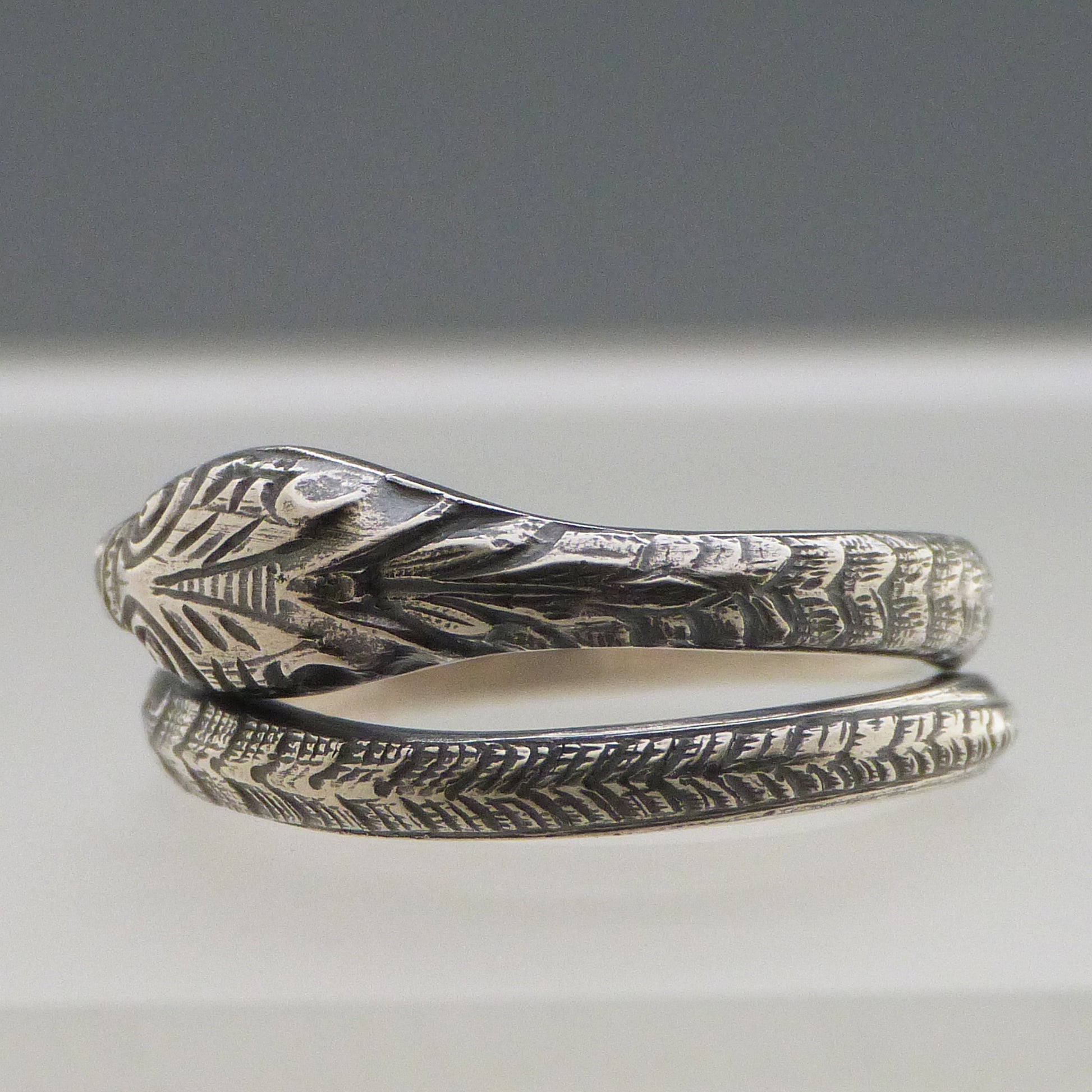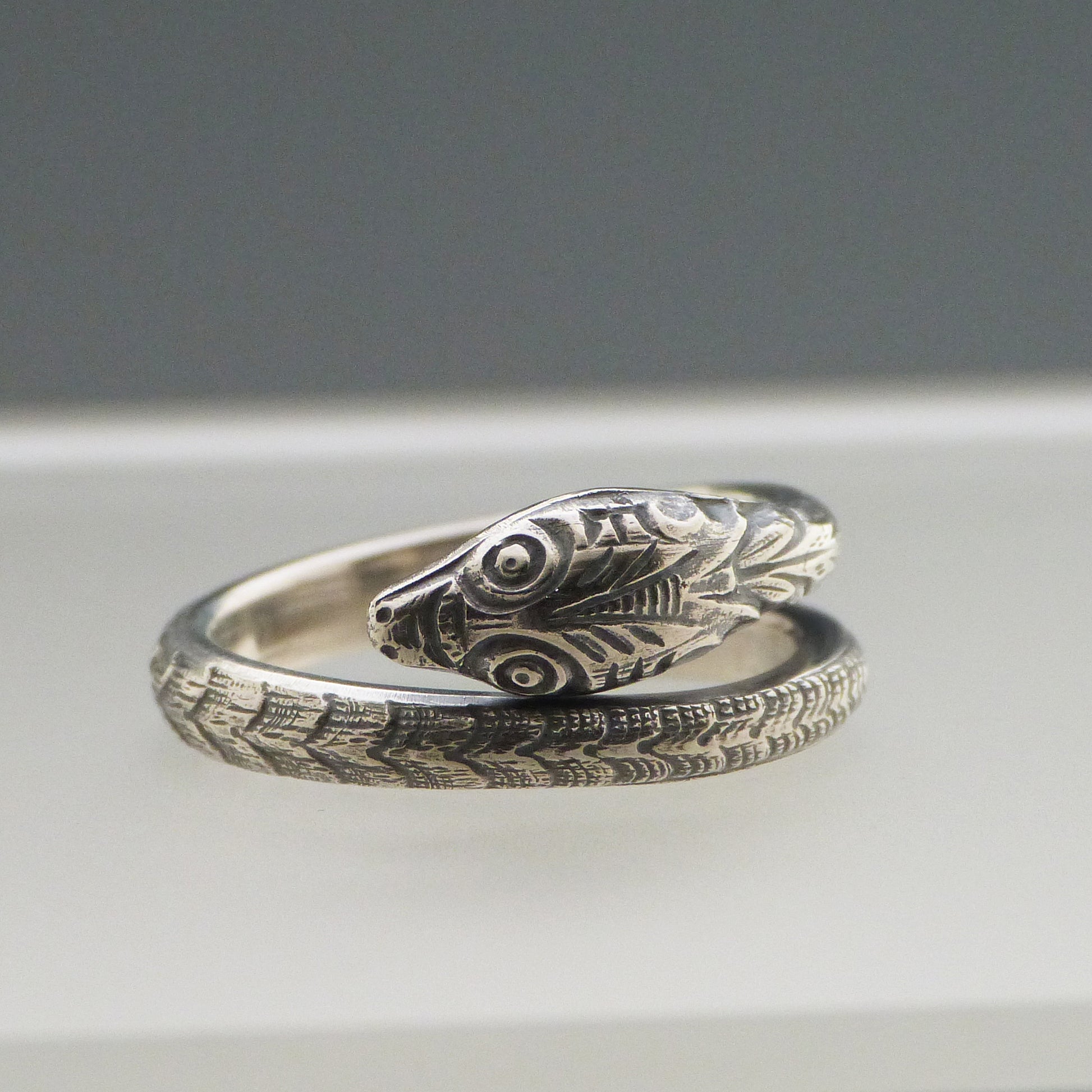 Look slithery-good in this handmade Sterling Silver Snake Ring. Crafted using an Antique Dye, it's adjustable and wraps snuggly around your finger. You won't be hiss-ing when you show up wearing this handmade piece! Identify approximate ring size in comments or email.