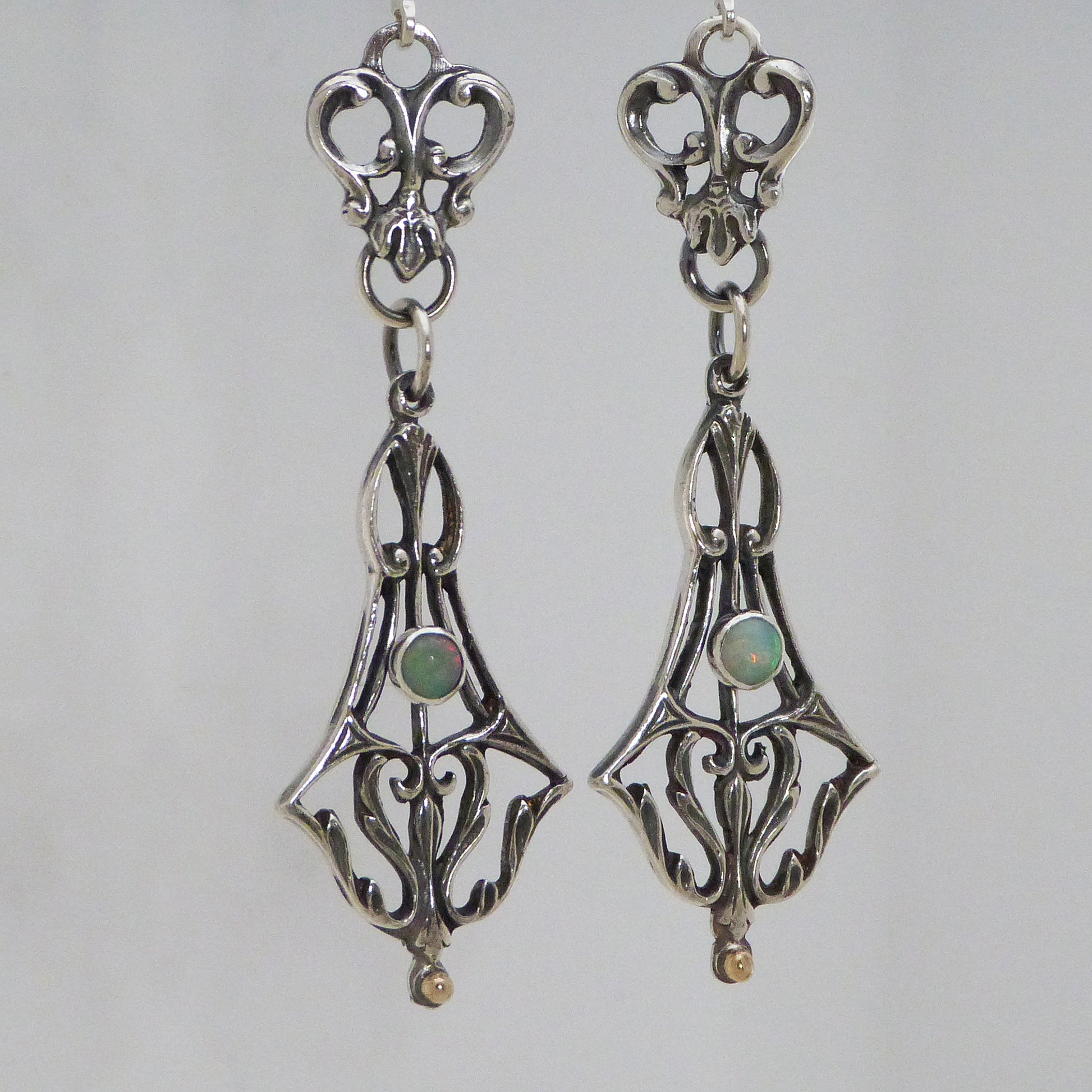 Victorian Hand Pierced Earrings with Ethiopian Opal